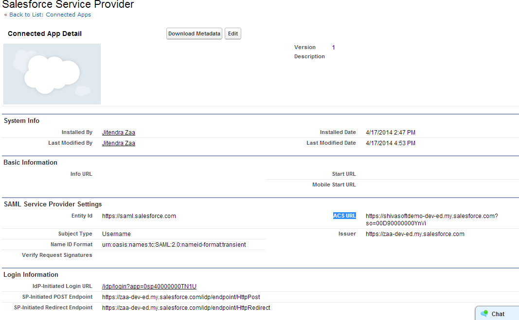 - ACS URL – Use the Salesforce Login URL from Service Provider as shown in Image 2