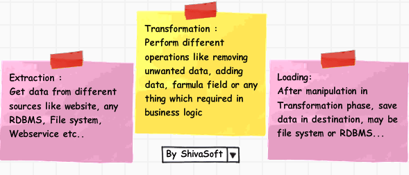 ETL is the process in database usage, specially in Dataware house that evolves getting data from different sources (Extract) , performing manipulation operations as per business need (Transformation) and saving on destination database (loading).